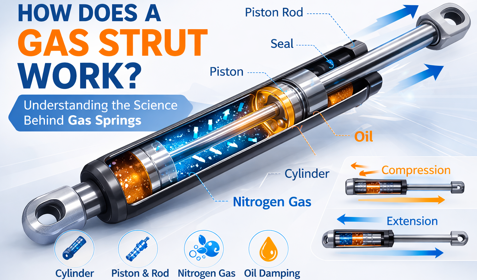 - Elastic locking gas spring is achieved by filling the gas spring with compressible nitrogen.