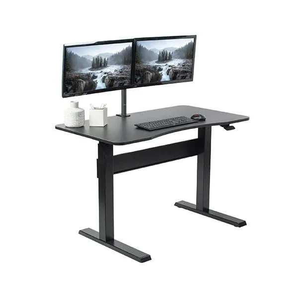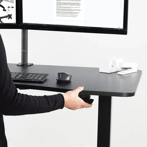 Pneumatic standing desk spacious desktop provides room for dual monitor setups and important supplies with that you can organize your workspace to fit your preferred layout. This pneumatic office desk supports up to 50 lbs with a frame made from solid steel for lighter cargoes and allow for quicker height adjustment.